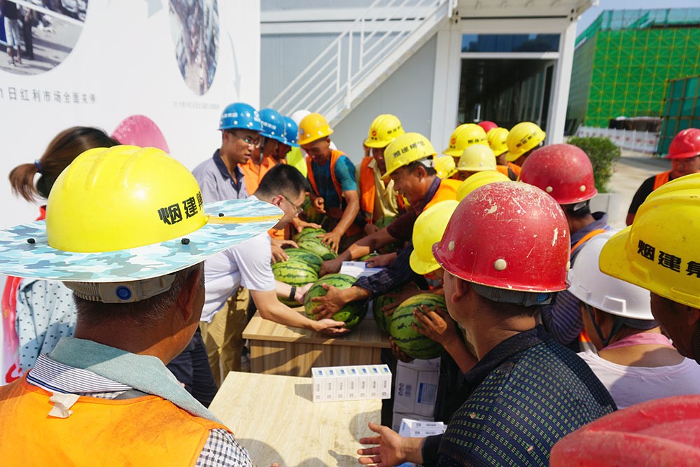 眼下,雖已立秋,但持續(xù)的高溫天氣,讓建設(shè)工地的工人們?nèi)皂斨籽琢胰眨瑩]汗如雨,迎戰(zhàn)“烤”驗(yàn)。為促進(jìn)一線工人身心健康,實(shí)現(xiàn)工地安全生產(chǎn),8月18日上午,財(cái)政監(jiān)管市屬國(guó)有企業(yè)“紅色先鋒”黨建聯(lián)盟一行20名黨員代表,來(lái)到芝罘灣廣場(chǎng)建設(shè)工地,組織開展了“進(jìn)工地送清涼”活動(dòng),為工人們送上西瓜、礦泉水、藥品等...