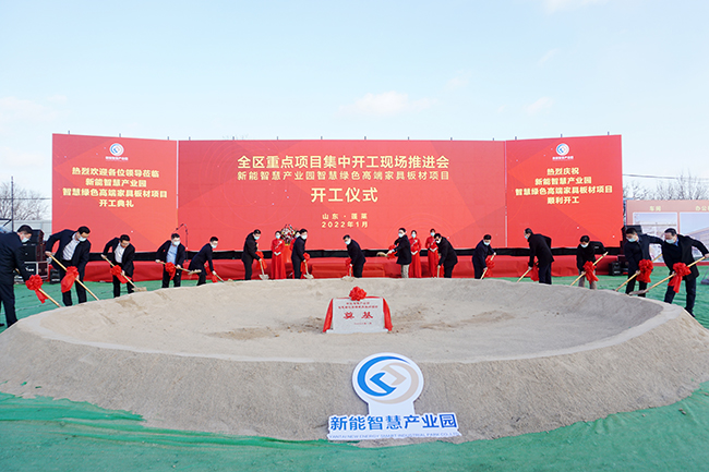 開局就是決戰(zhàn),起步就是沖刺。1月16日上午,煙臺市舉行2022年重點項目集中開工活動,在蓬萊區(qū)分會場,新能智慧產(chǎn)業(yè)園智慧綠色高端家具板材一期項目奠基開工。蓬萊區(qū)委書記林鈺濤、區(qū)長王長港及區(qū)委區(qū)政府其他領(lǐng)導(dǎo)班子成員出席活動慶典,煙臺財金集團總經(jīng)理李輝、煙臺新能智慧產(chǎn)業(yè)園董事長吳軍紀、總經(jīng)理高春光及產(chǎn)業(yè)園全體員工共同參加慶典并見證項目奠基開工。