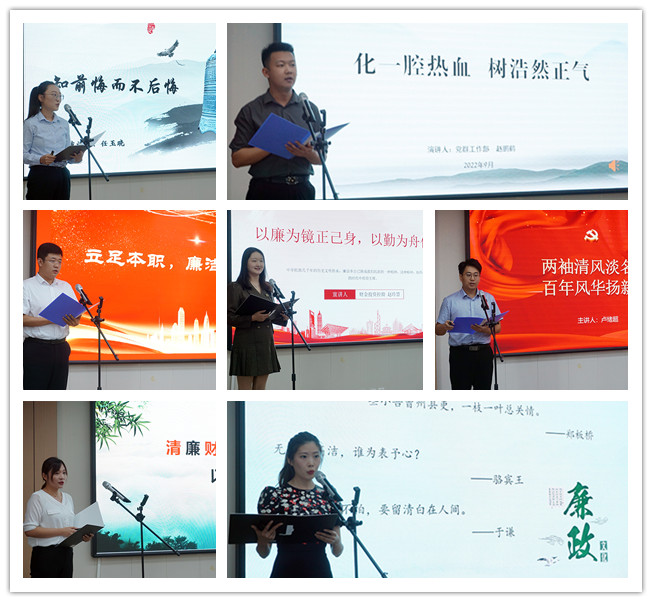 本次比賽共有來(lái)自集團(tuán)各部室、子公司7名員工參加,依次通過(guò)PPT、短視頻等形式,引經(jīng)據(jù)典,以學(xué)倡廉,以文育廉。通過(guò)古今對(duì)話、正反對(duì)比弘揚(yáng)清廉之風(fēng),筑牢思想防線,嚴(yán)守法紀(jì)底線。演講結(jié)束后,參會(huì)領(lǐng)導(dǎo)當(dāng)場(chǎng)評(píng)分并為獲獎(jiǎng)?wù)哳C獎(jiǎng)。